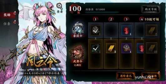 风云令分为免费版本“豪侠令”、98元版本“武尊令”以及168元版本“武魂令”,完成指定任务目标可以获得战令经验,解锁丰厚奖励!