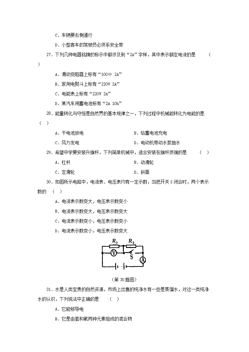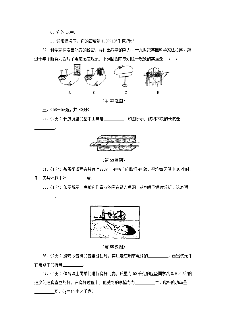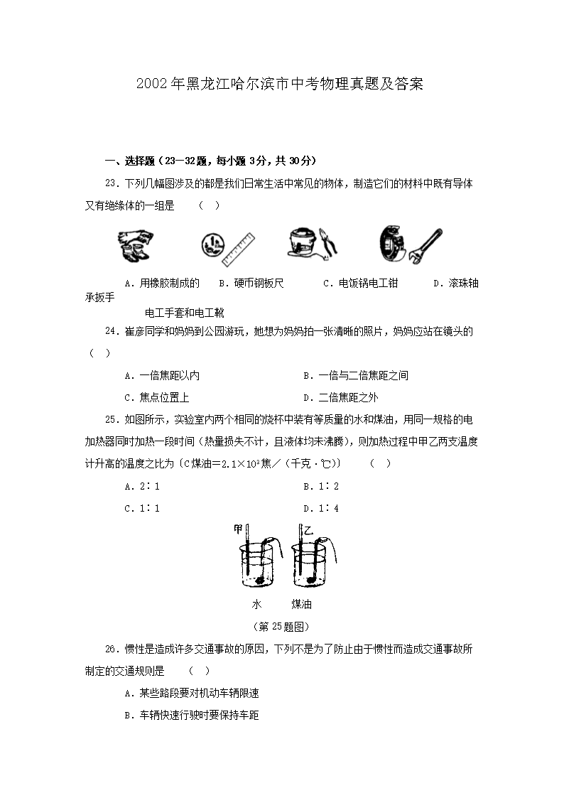 2002年黑龙江哈尔滨市中考物理真题及答案(Word版)05-30