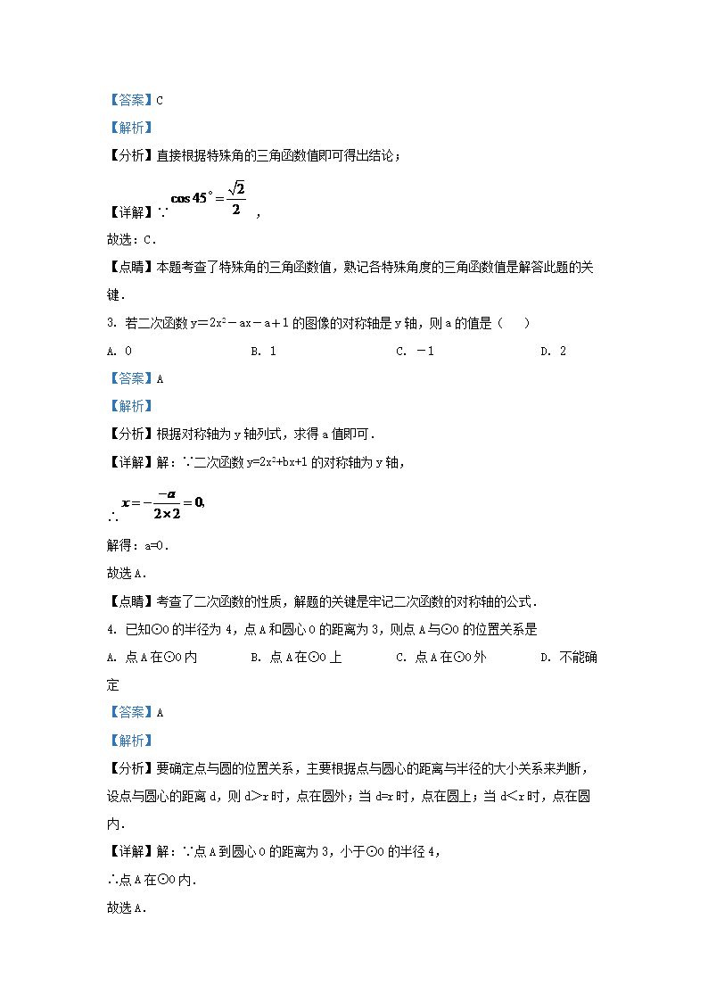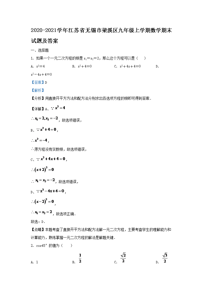 2020-2021学年江苏省无锡市梁溪区九年级上学期数学期末试题及答案(Word版)09-28
