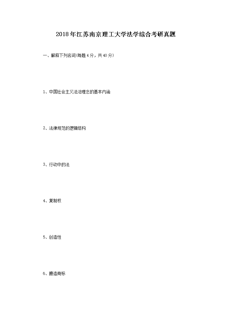 【文档预览】 文档大全网整理发布2018年江苏南京理工大学法学综合考研真题(Word版),前五页预览如下: