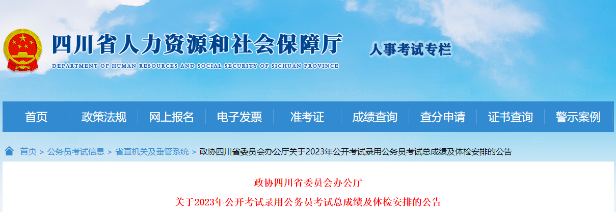 原文标题:政协四川省委员会办公厅关于2023年公开考试录用公务员考试总成绩及体检安排的公告