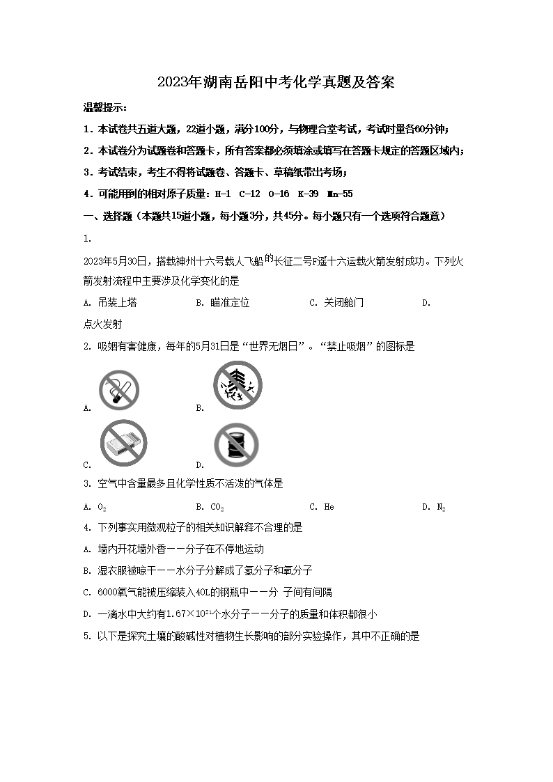 【文档预览】 文档大全网整理发布2023年湖南岳阳中考化学真题及答案(Word版),前五页预览如下: