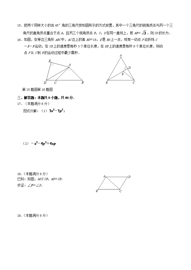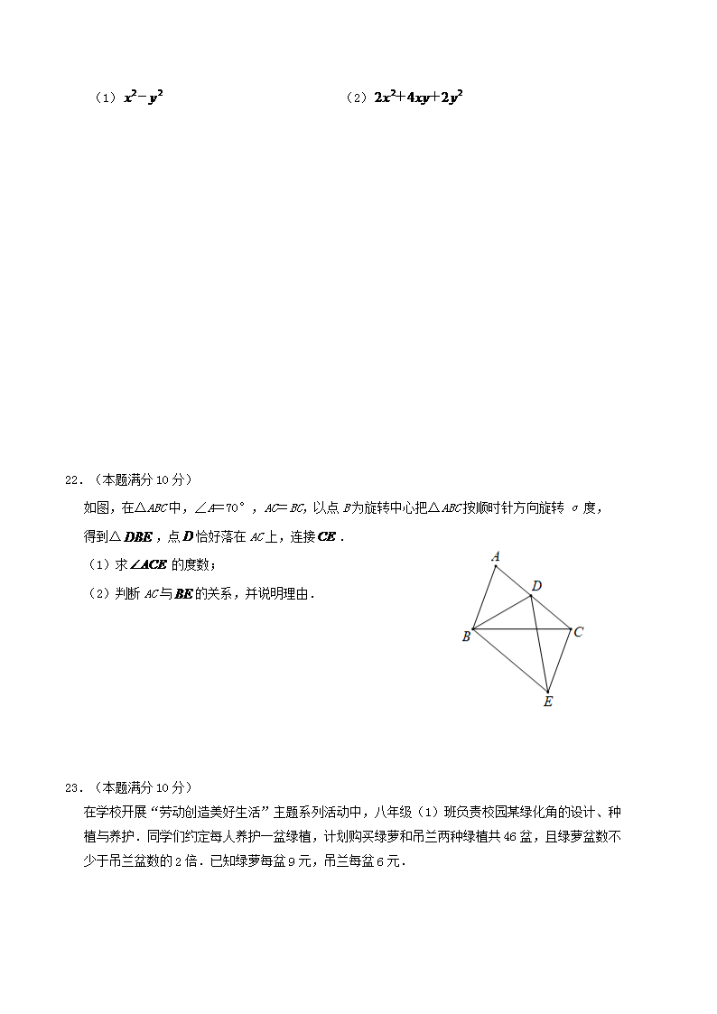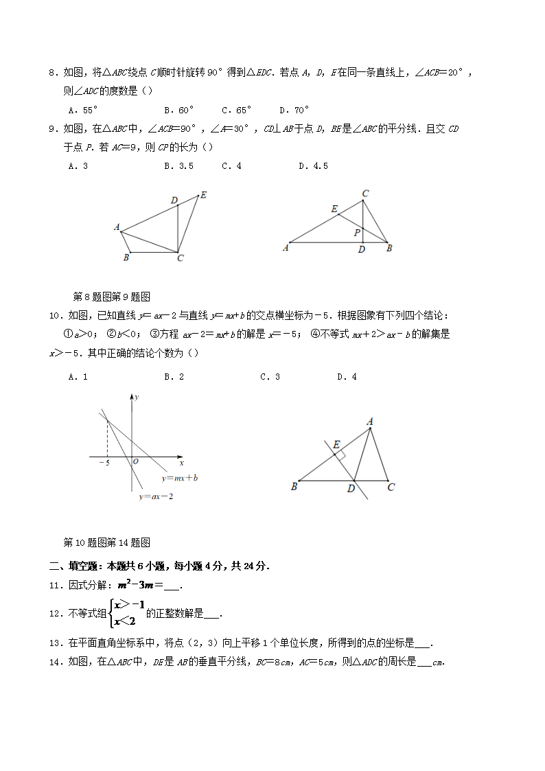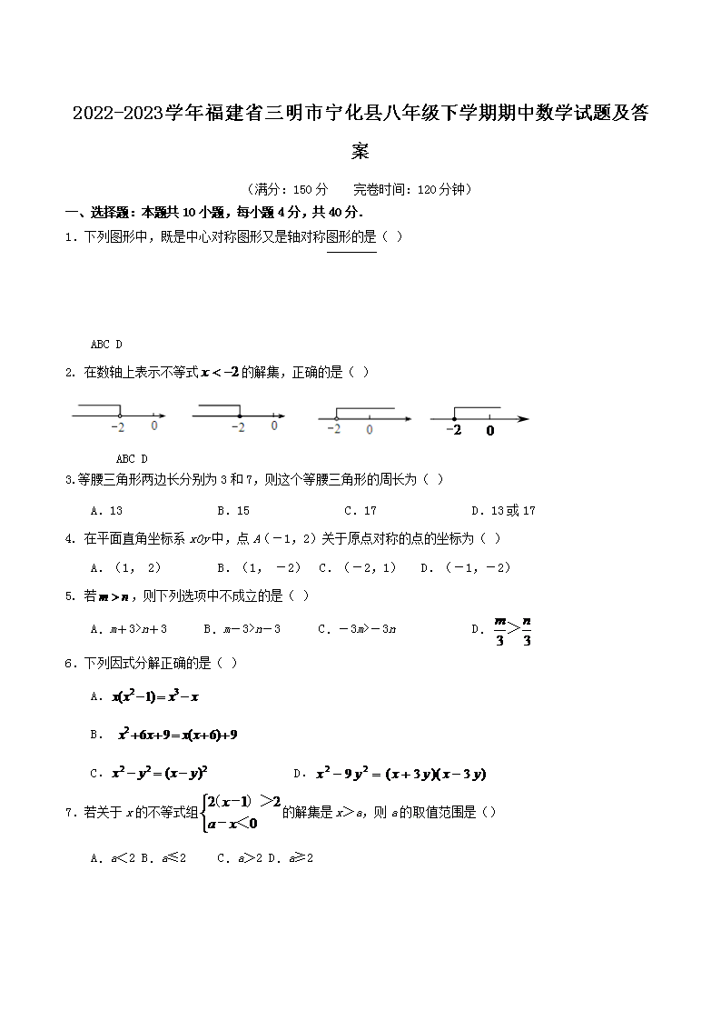 2022-2023学年福建省三明市宁化县八年级下学期期中数学试题及答案(Word版)10-12