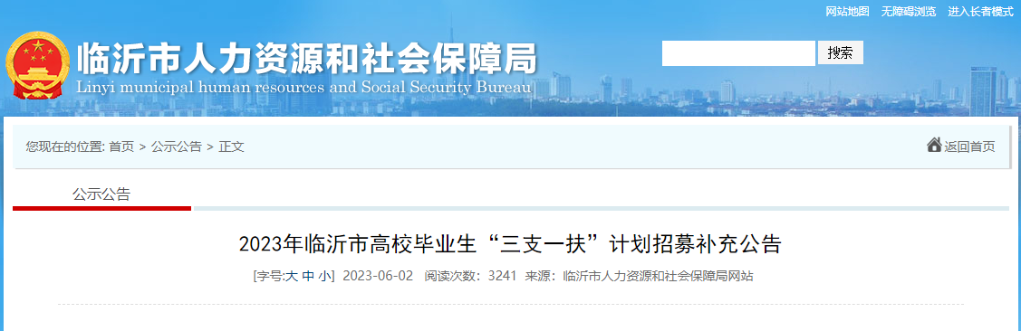 2023年山东临沂市高校毕业生“三支一扶”计划招募工作补充公告(181人)06-07