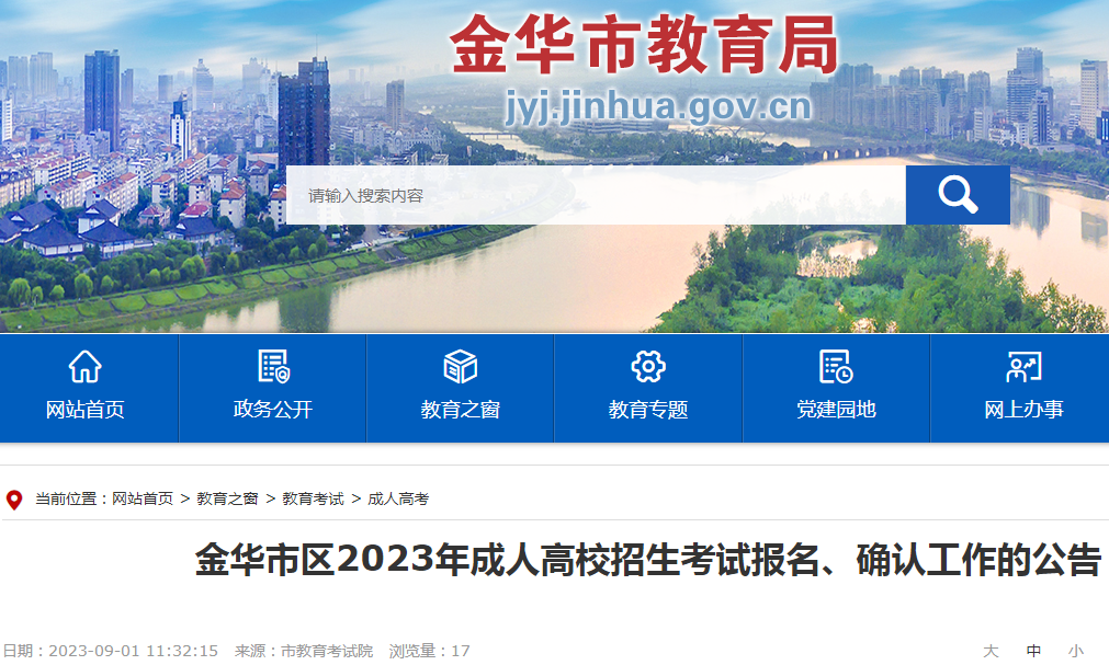 2023年全国成人高校招生统一考试时间为10月21日至22日,根据《2023年浙江省成人高校招生工作实施方案》精神,现将金华市区成人高考报名及确认工作的有关事项公告如下。