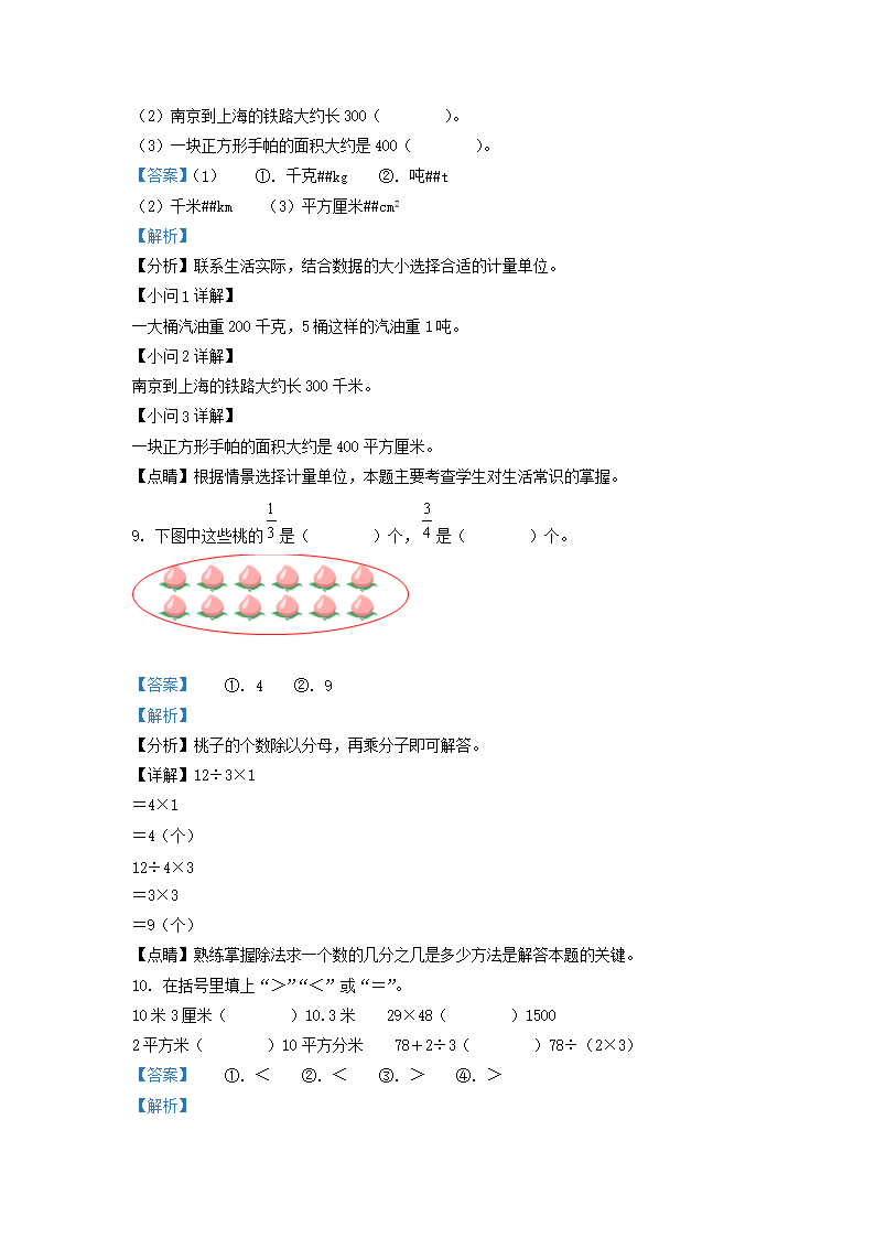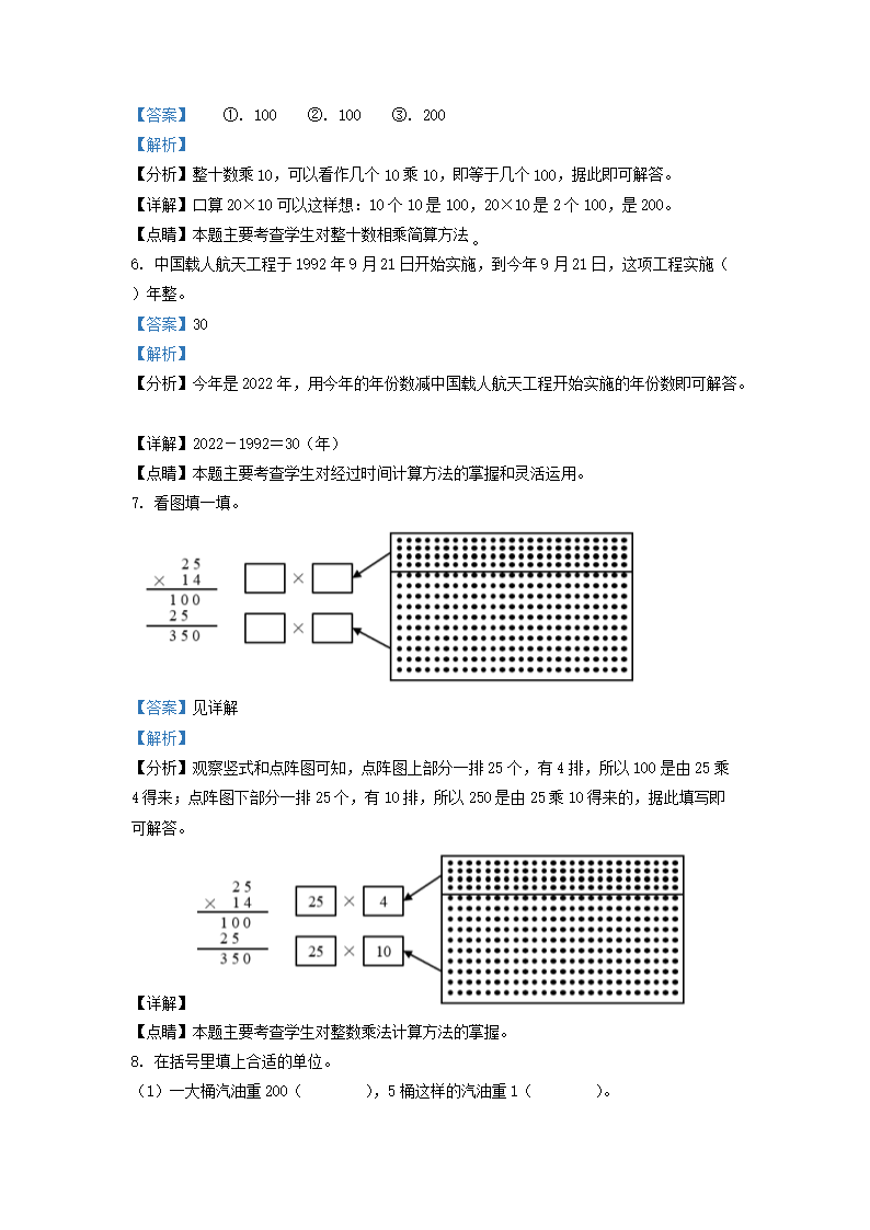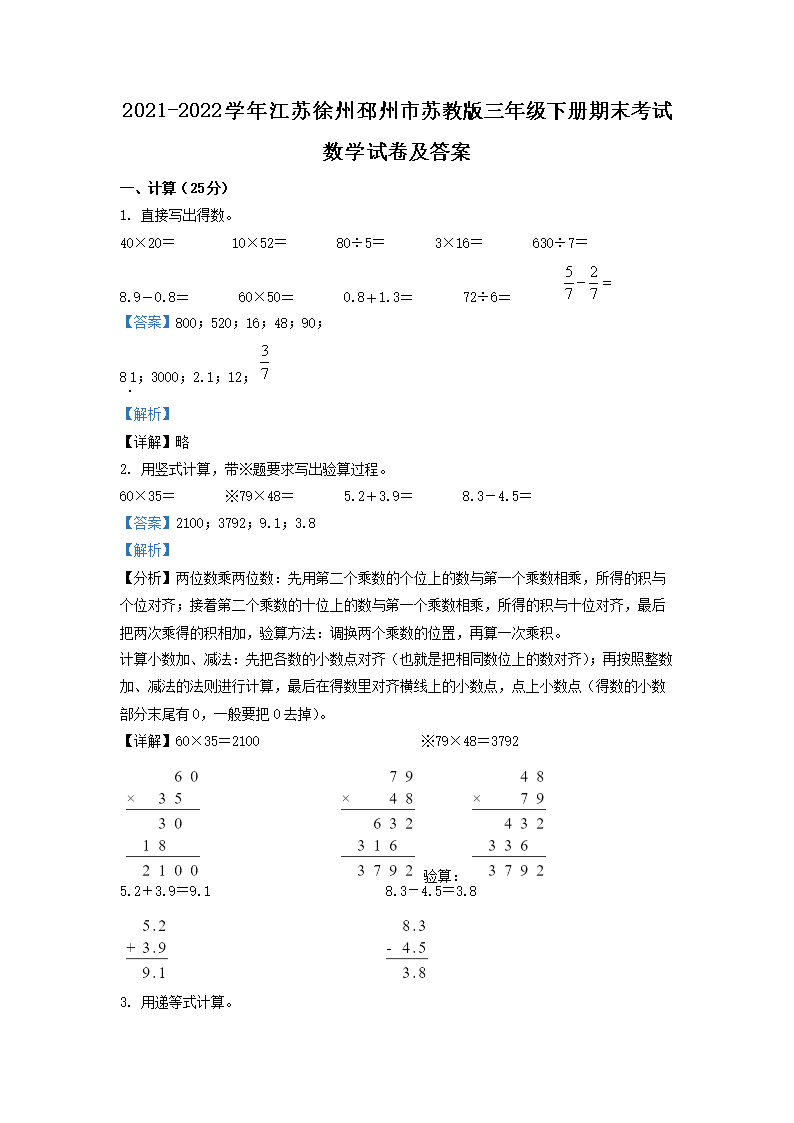 2021-2022学年江苏徐州邳州市苏教版三年级下册期末考试数学试卷及答案(Word版)07-11