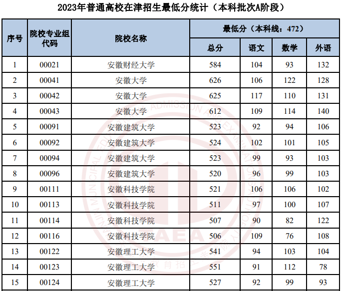 点击查看:2023年天津市普通高考A阶段录取最低分数线(完整版)
