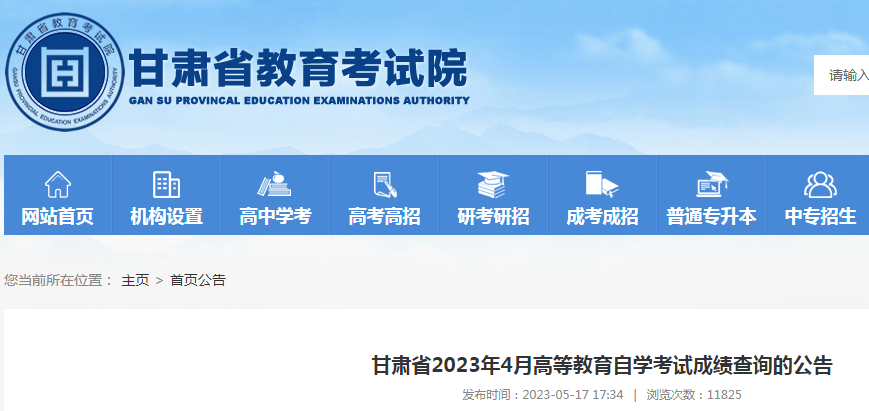 甘肃省2023年4月自学考试成绩查询公告05-18