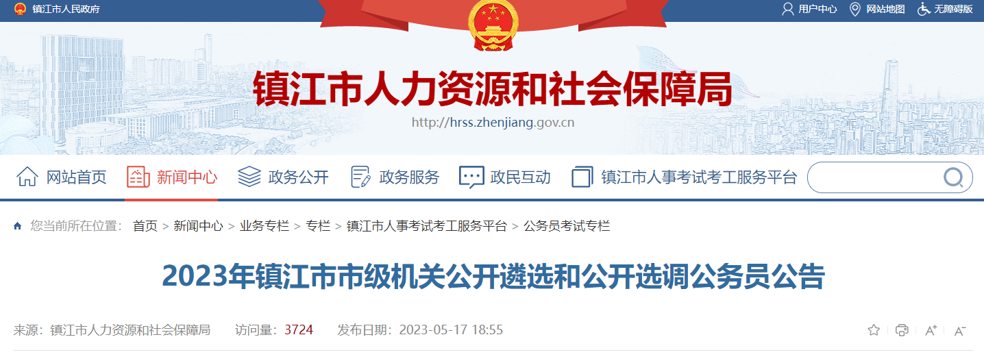 原文标题:2023年镇江市市级机关公开遴选和公开选调公务员公告