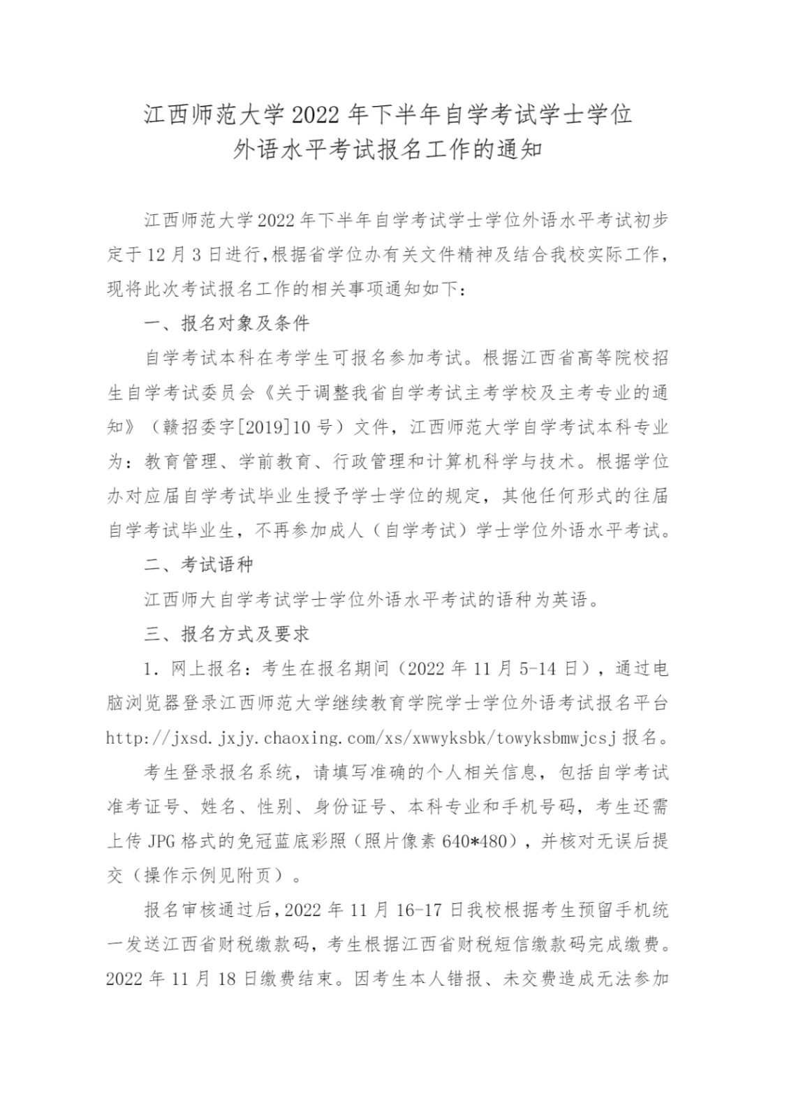 2022下半年江西师范大学自学考试学士学位英语水平考试报名工作的通知11-12