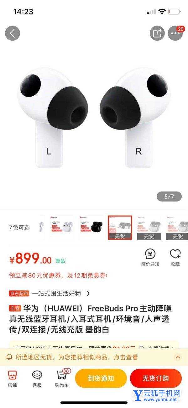 华为 FreeBuds Pro 无线耳机墨韵白新配色现身京东,显示售价 899 元。