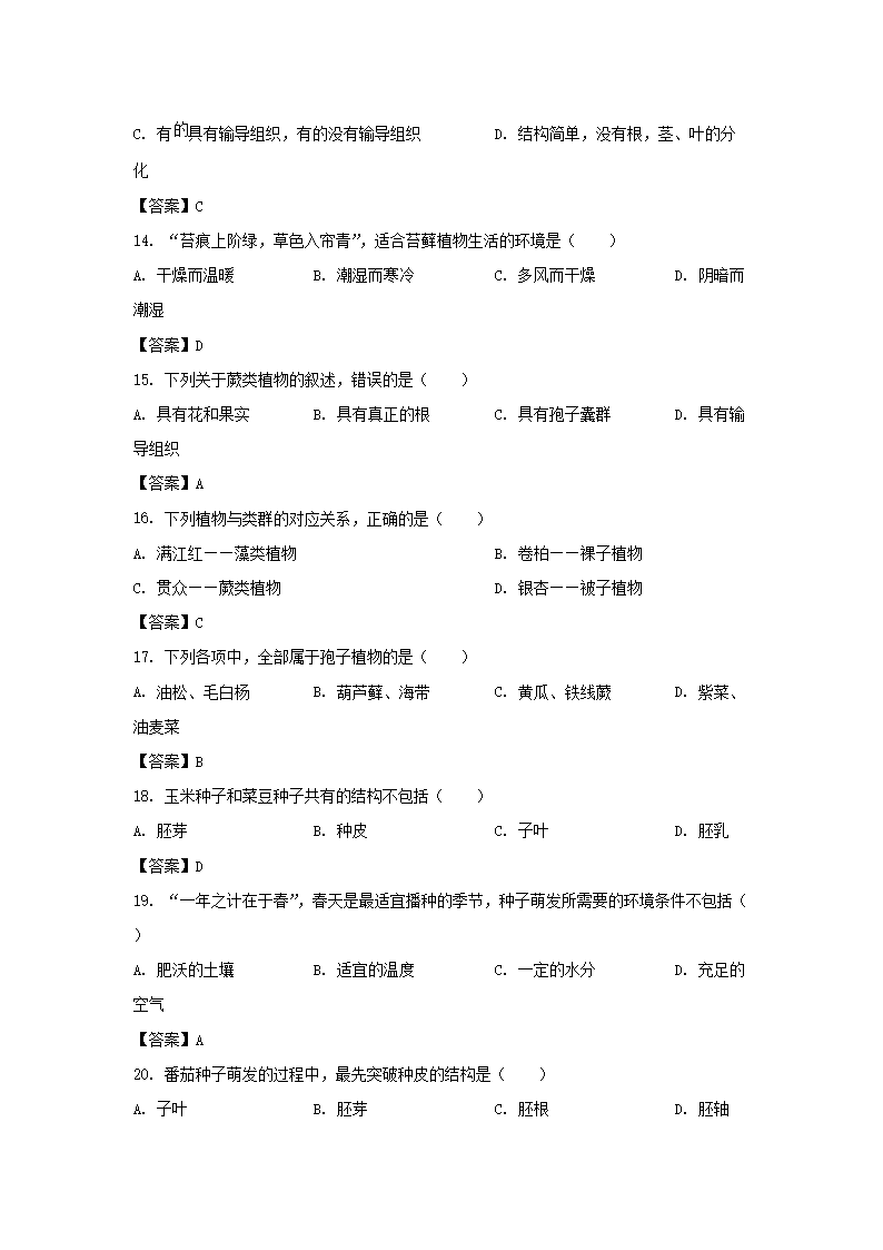 【文档预览】 文档大全网整理发布2021-2022学年广东深圳南山区七年级上册期末生物试卷及答案(Word版),前五页预览如下: