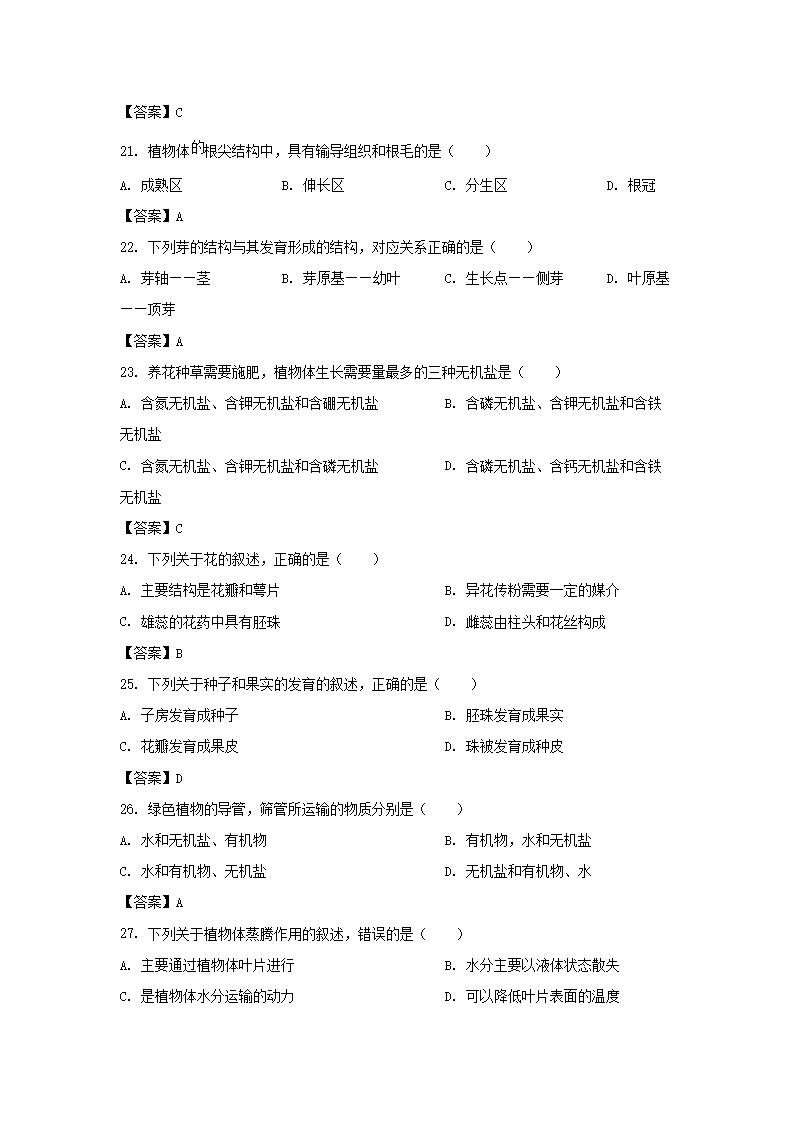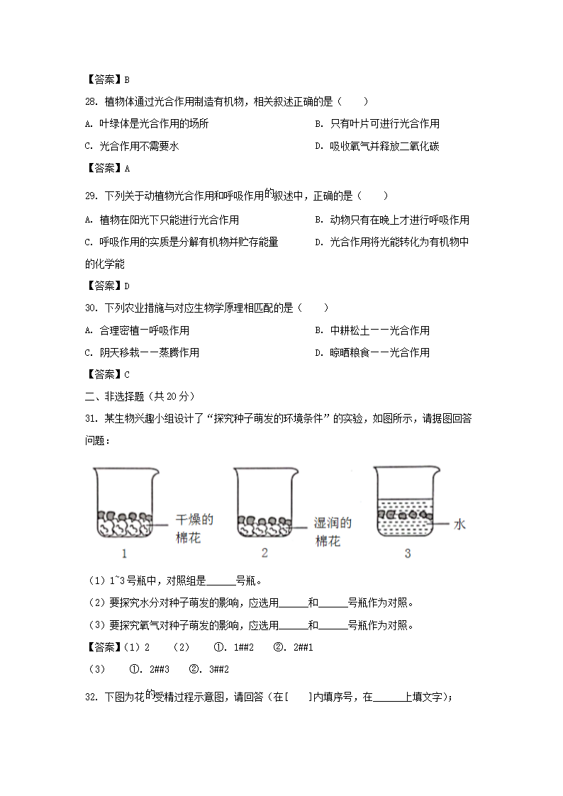 2021-2022学年广东深圳南山区七年级上册期末生物试卷及答案(Word版)09-22