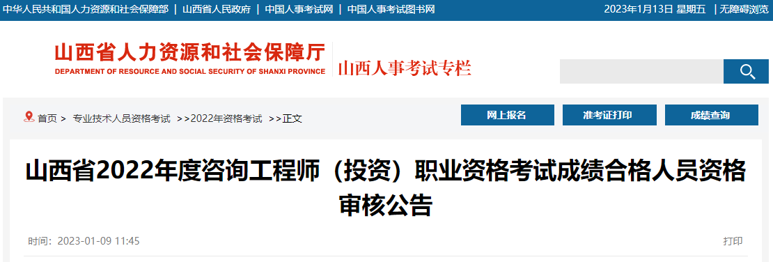 原文标题:山西省2022年度咨询工程师(投资)职业资格考试成绩合格人员资格审核公告