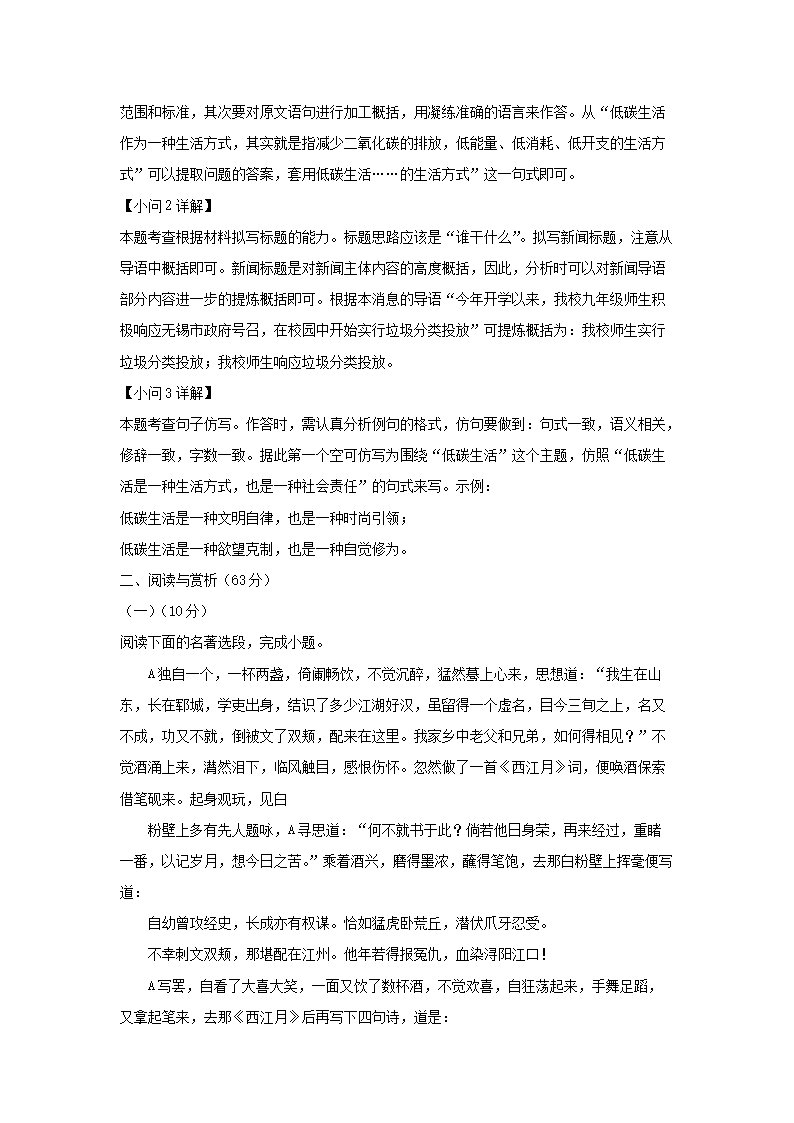 2021-2022学年江苏省无锡市梁溪区九年级上学期语文期末试题及答案(Word版)09-12