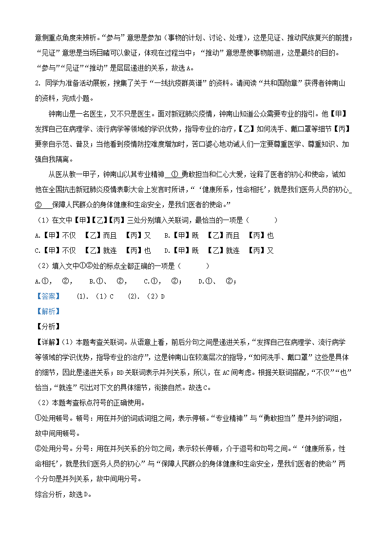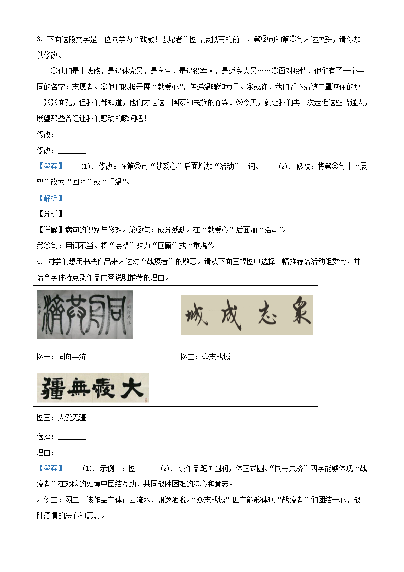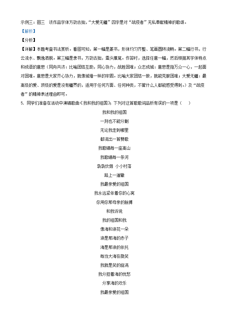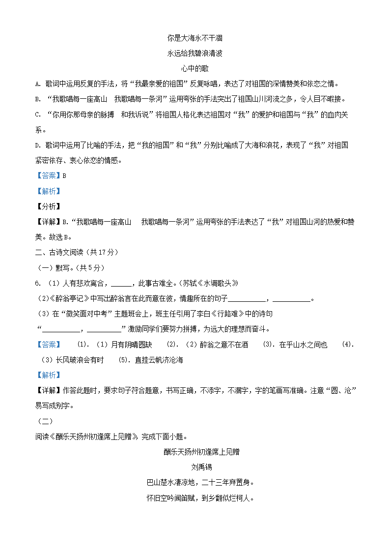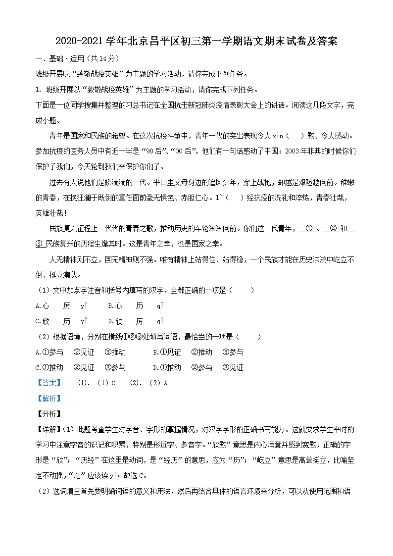 2020-2021学年北京昌平区初三第一学期语文期末试卷及答案(Word版)07-14