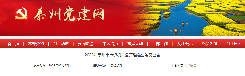 原文标题:2023年泰州市市级机关公开遴选公务员公告