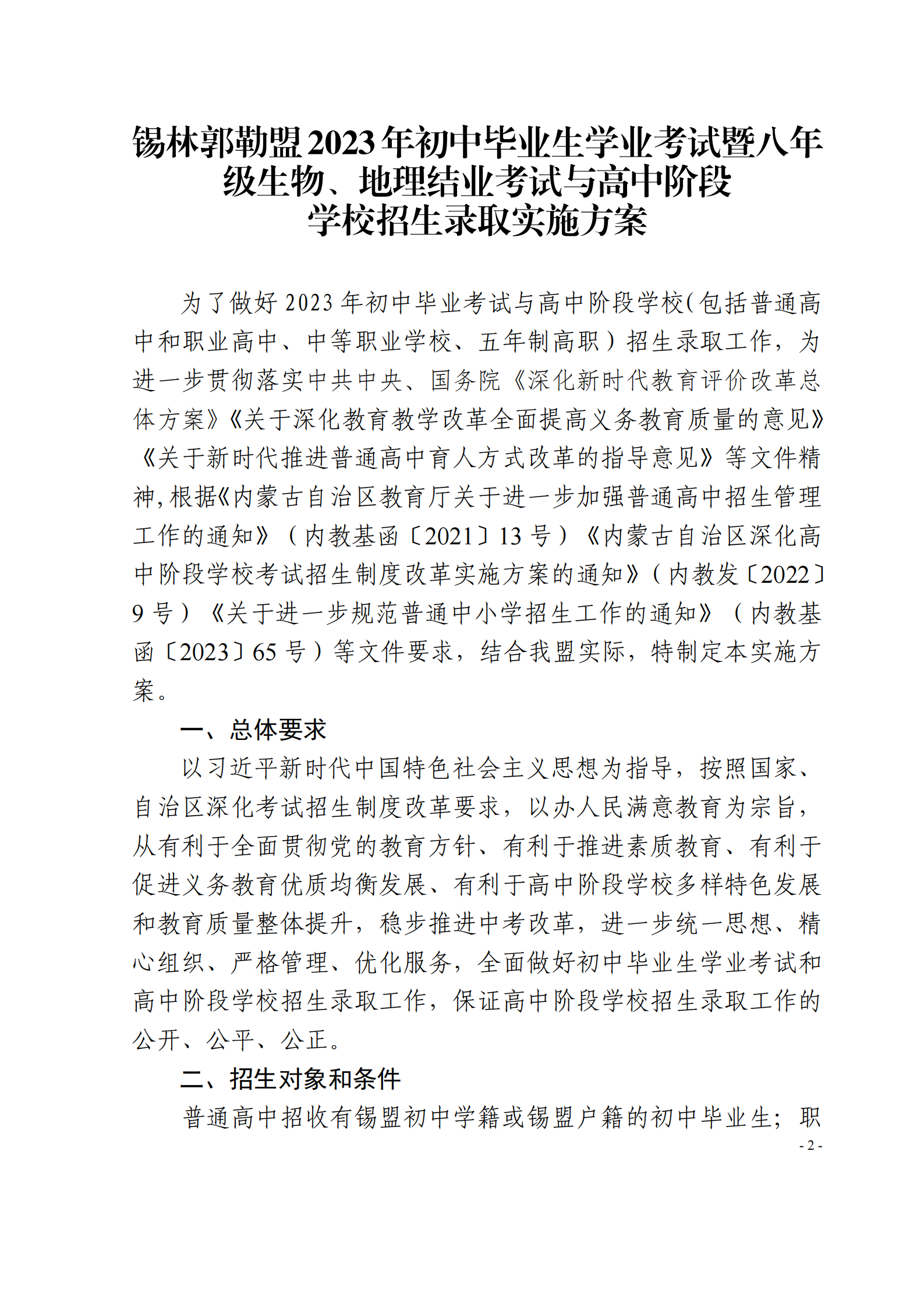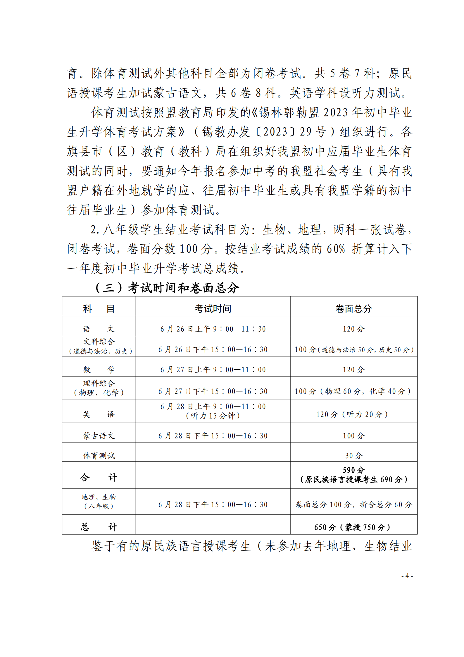 原文标题:锡林郭勒盟教育局关于印发2023年初中毕业生学业考试和八年级生物、地理结业考试与高中阶段学校招生录取实施方案的通知