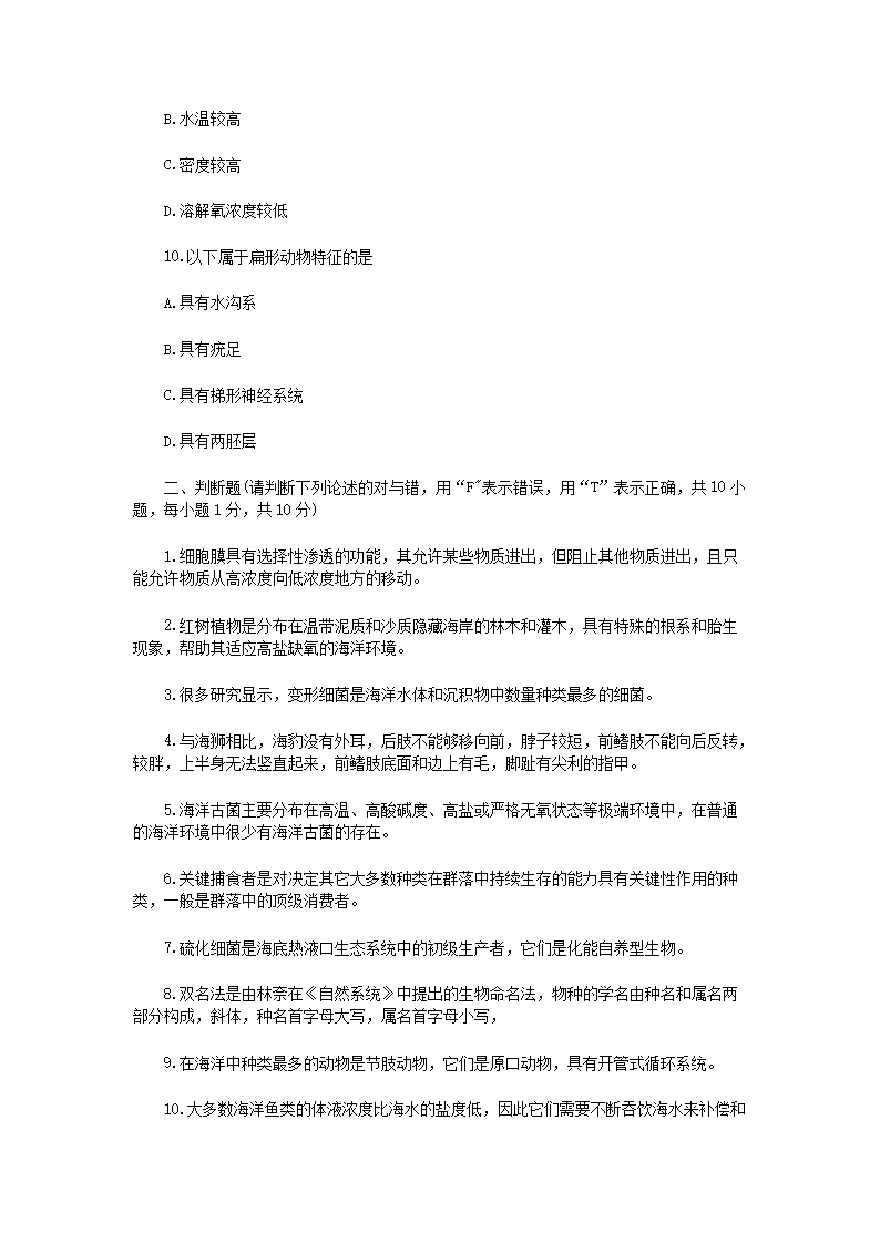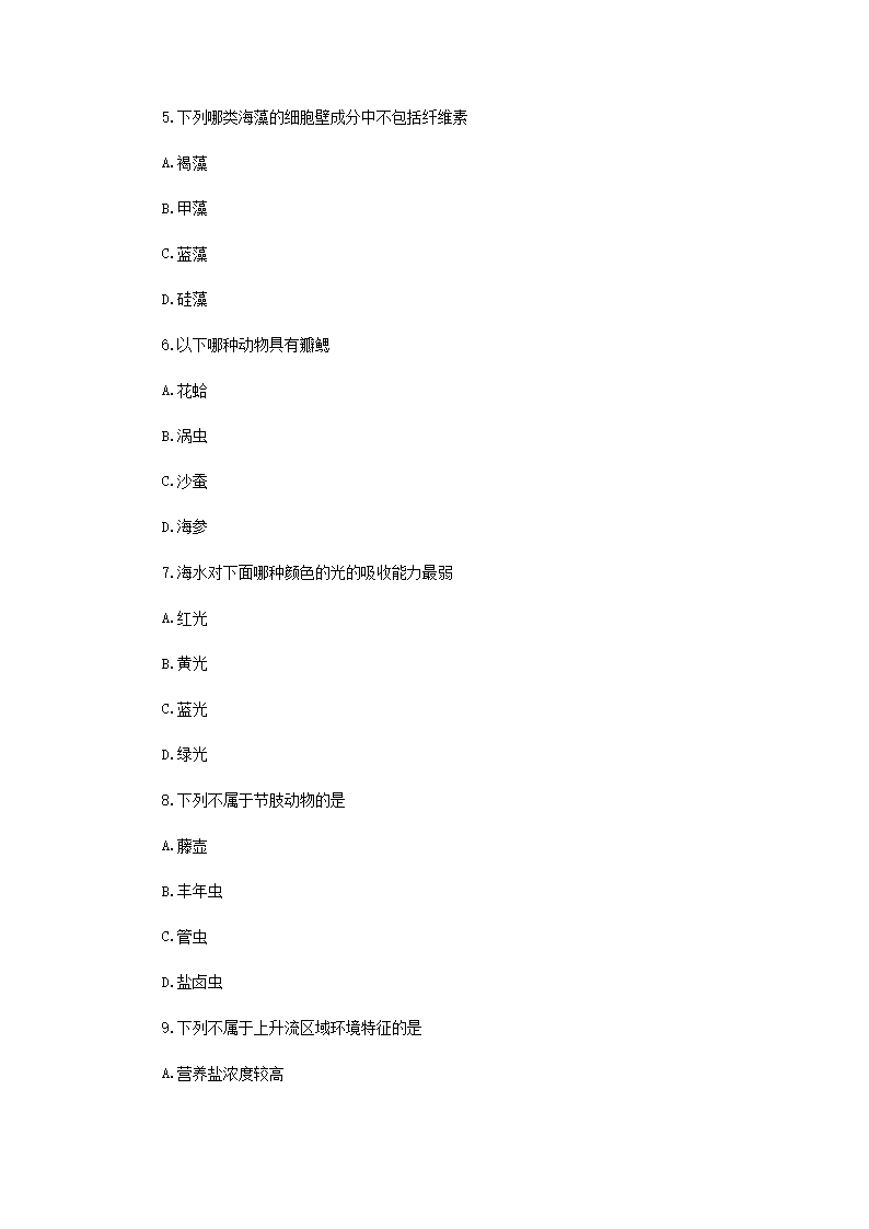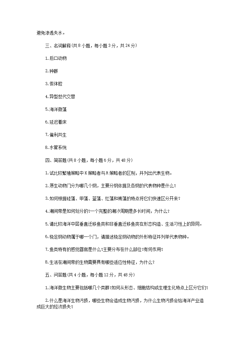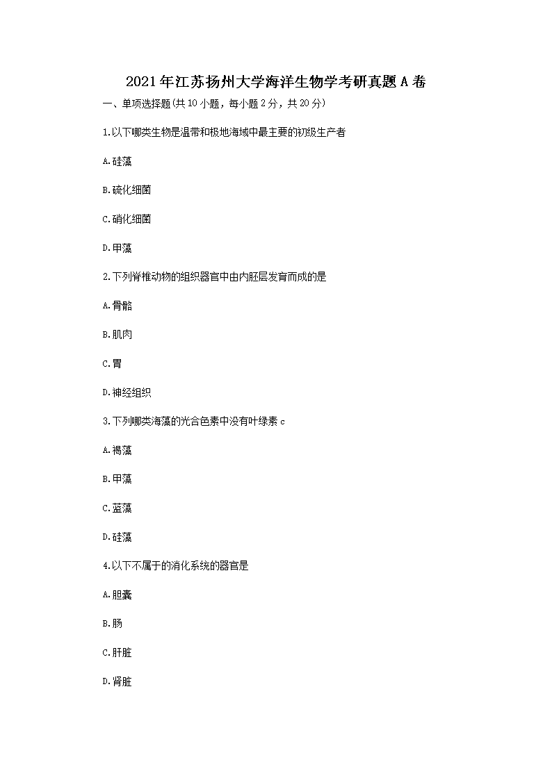 2021年江苏扬州大学海洋生物学考研真题A卷(Word版)08-31