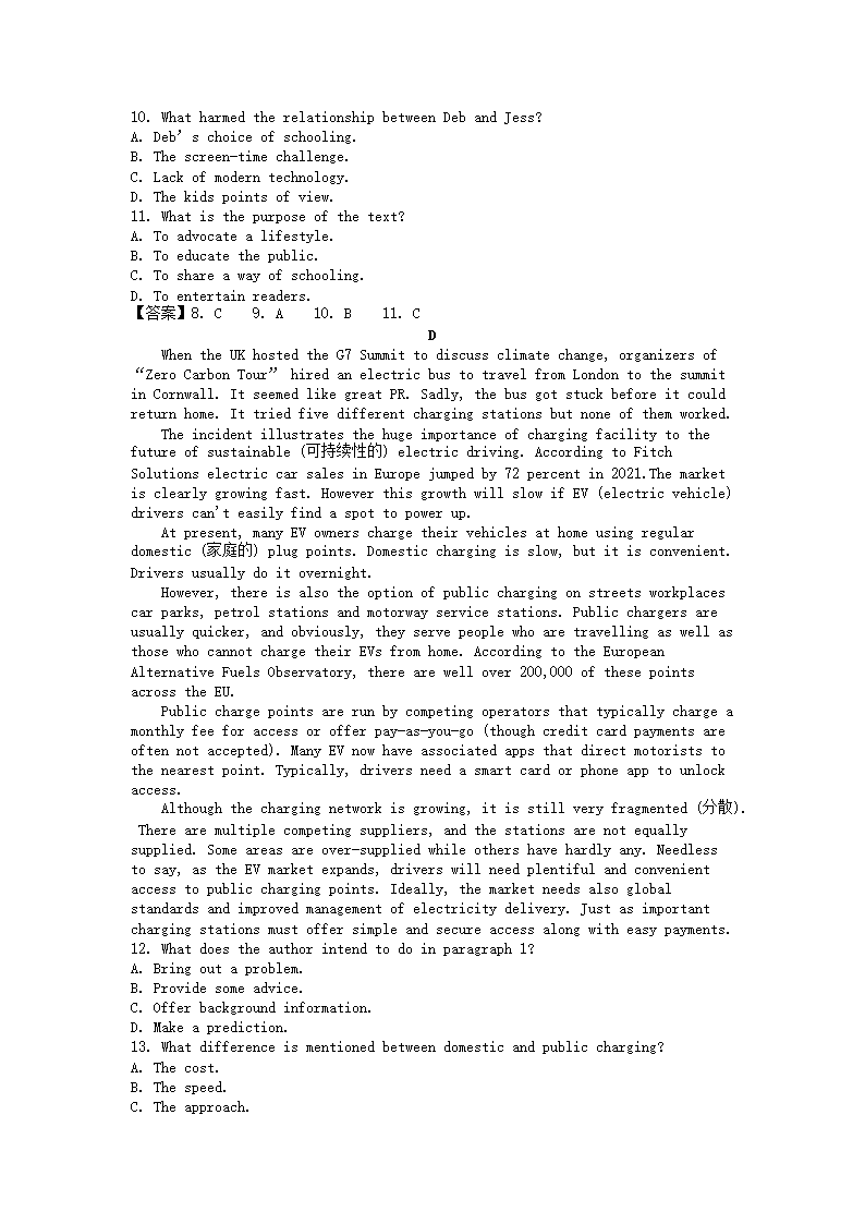 2021-2022年福建厦门高一英语下学期期末试题及答案(Word版)09-23
