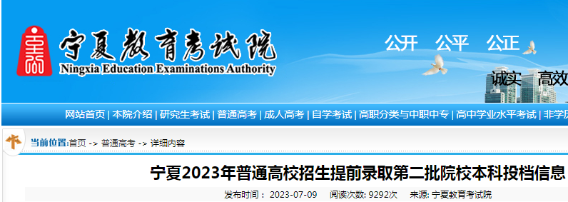 宁夏2023年普通高校招生提前录取第二批院校本科投档信息公布07-11