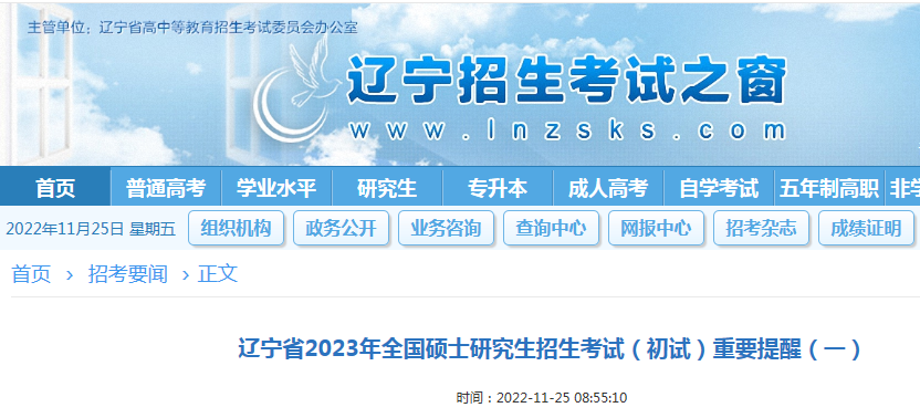 辽宁省2023年全国硕士研究生招生考试(初试)重要提醒(一)11-25