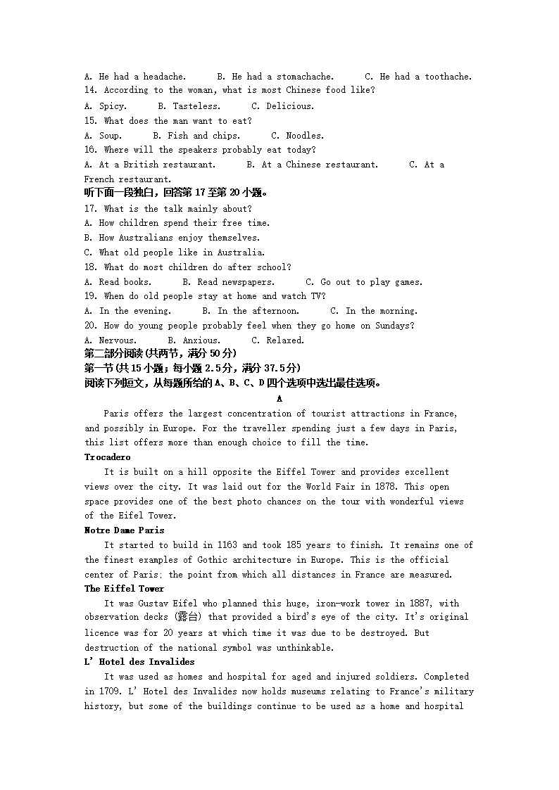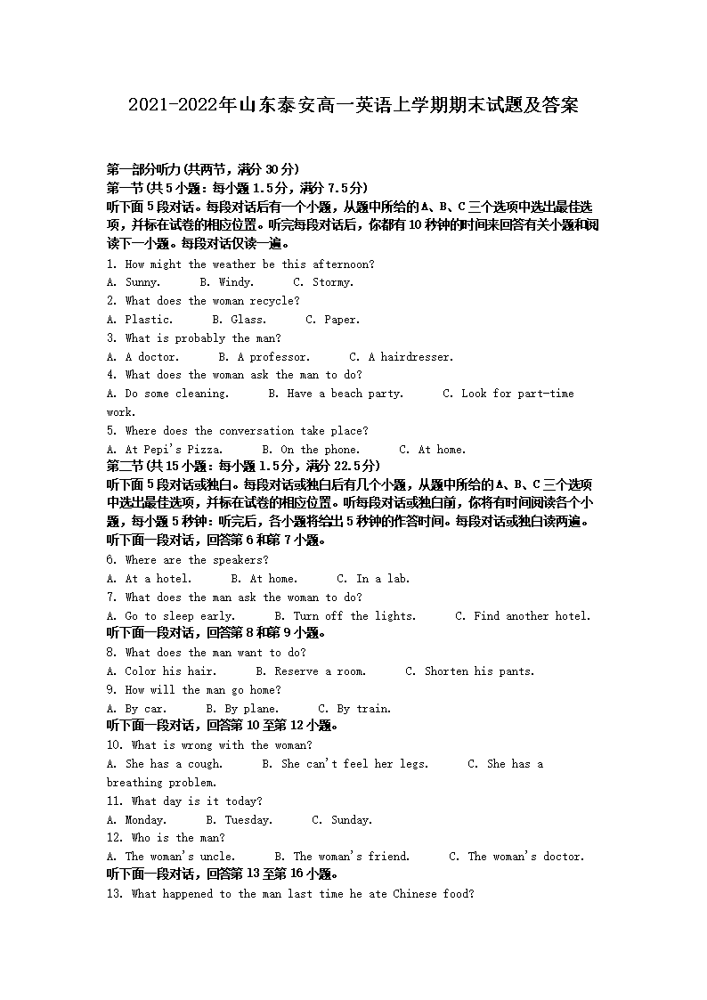 【文档预览】 文档大全网整理发布2021-2022年山东泰安高一英语上学期期末试题及答案(Word版),前五页预览如下:
