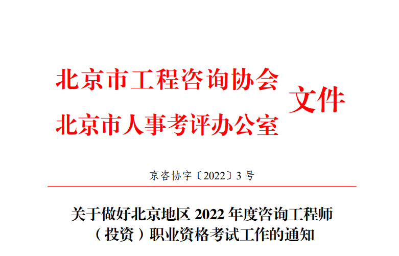 【#咨询师考试# 导语】《2022年北京咨询工程师(投资)职业资格考试工作通知》现已发布,2022年北京咨询工程师报名时间:2月25日-3月3日,考试时间:4月9日-10日,©文档大全网小编现将报考信息发布如下: