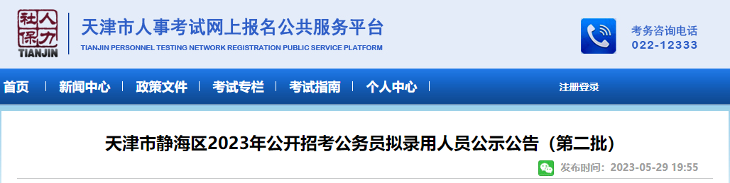 原文标题:天津市静海区2023年公开招考公务员拟录用人员公示公告(第二批)