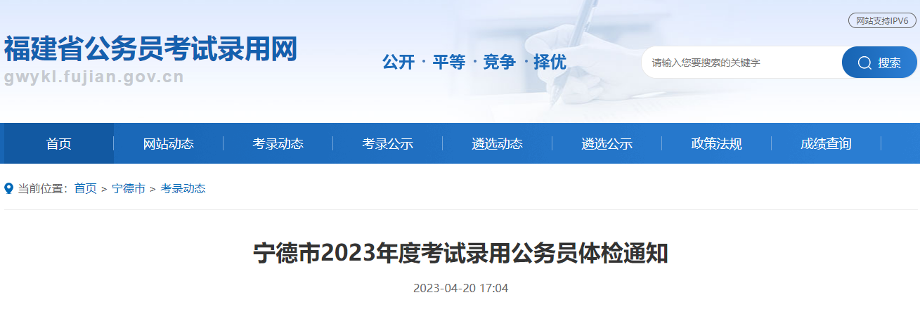 原文标题:宁德市2023年度考试录用公务员体检通知