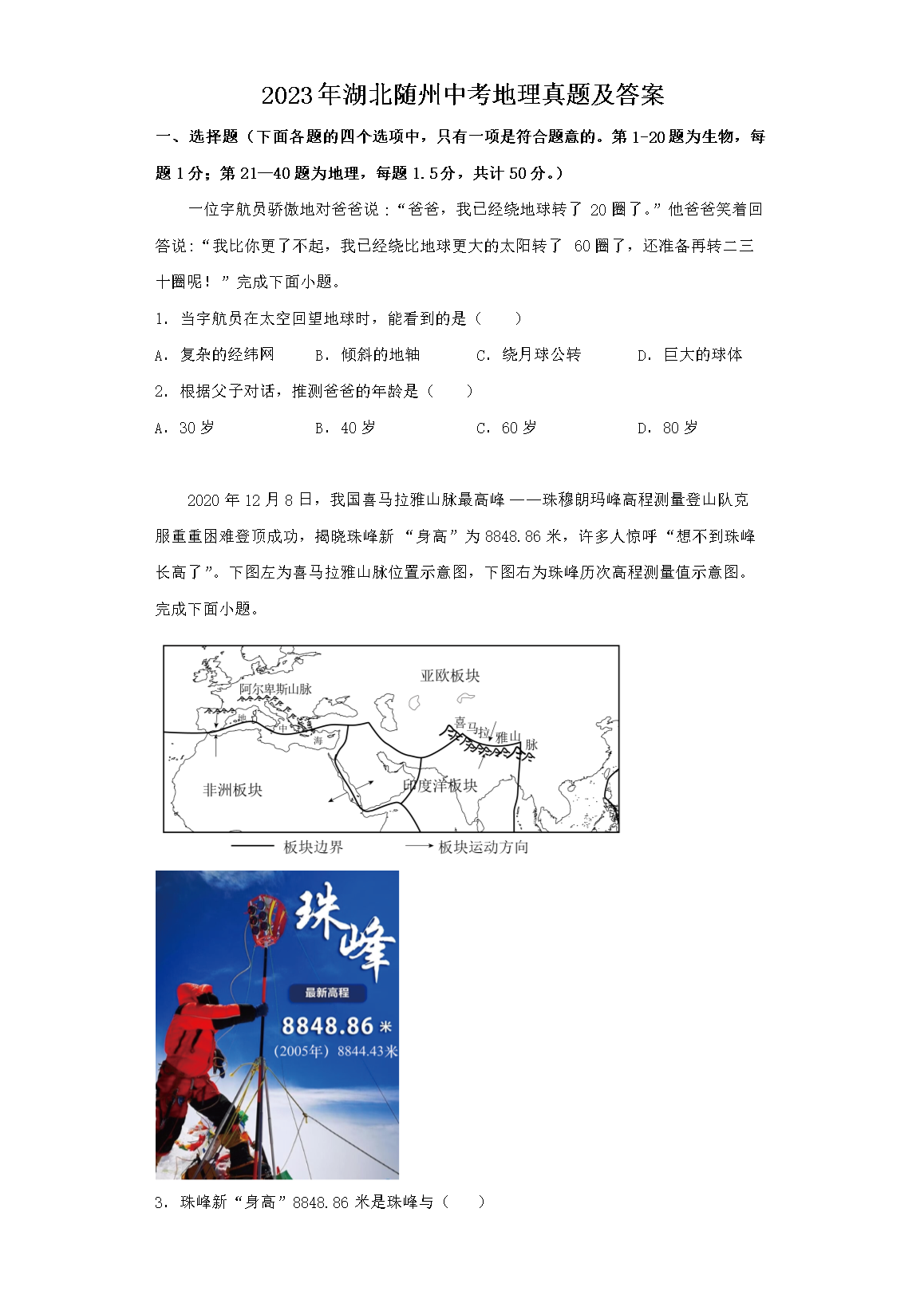 【文档预览】 文档大全网整理发布2023年湖北随州中考地理真题及答案(Word版),前五页预览如下: