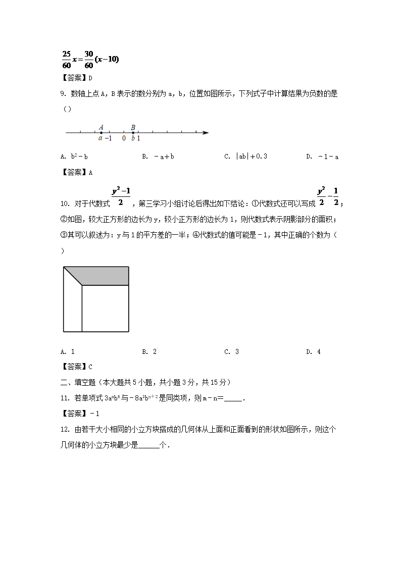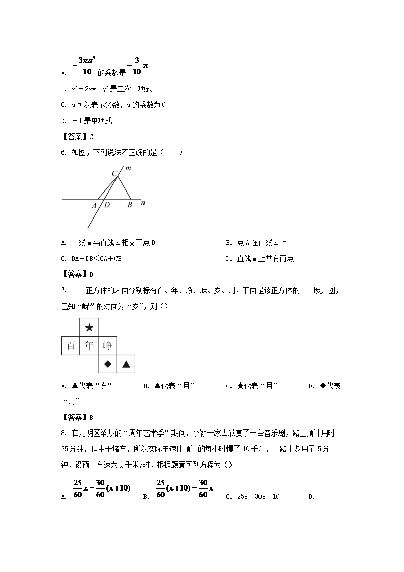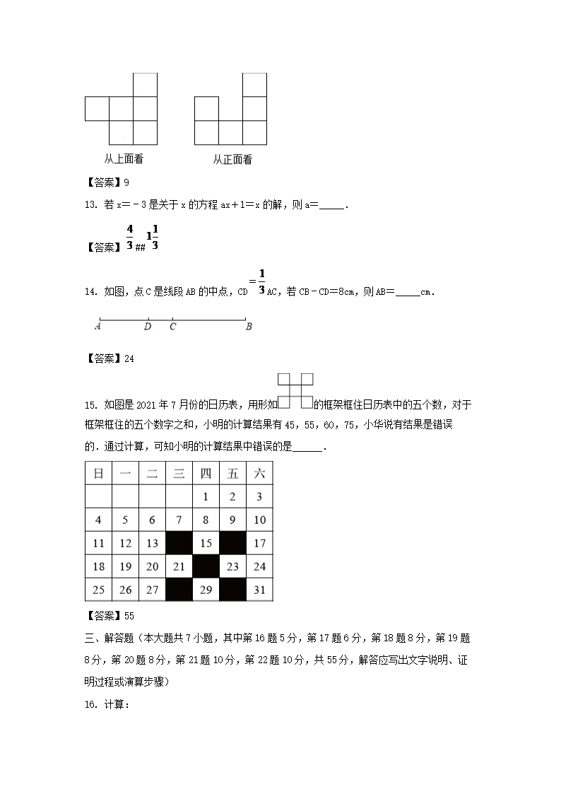 2021-2022学年广东深圳南山区七年级上册期末数学试卷及答案(Word版)09-23