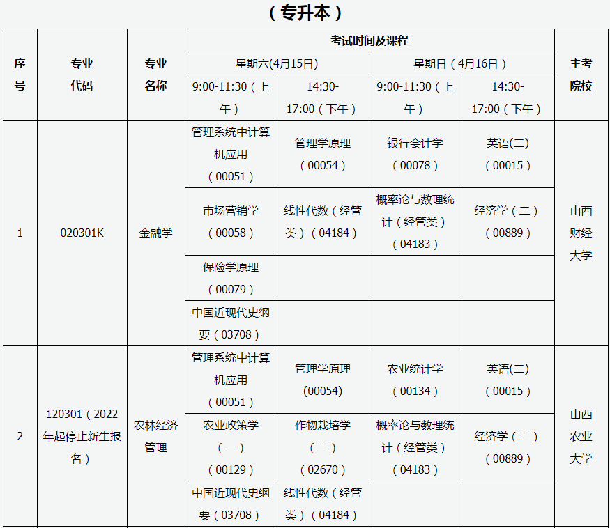 点击查看:山西省自学考试2023年4月专升本考试课程及时间