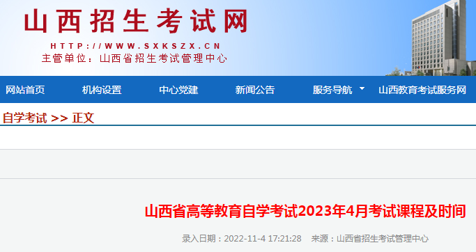 原文标题:山西省高等教育自学考试2023年4月考试课程及时间