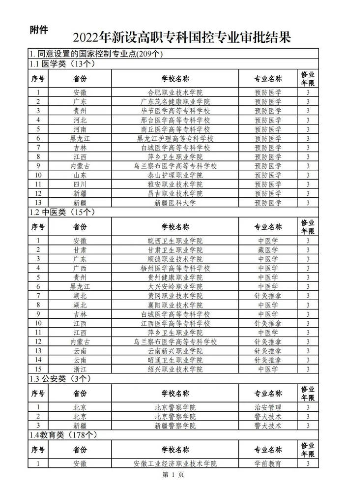 一起来看2022年新设高职专科国控专业审批结果↓↓↓