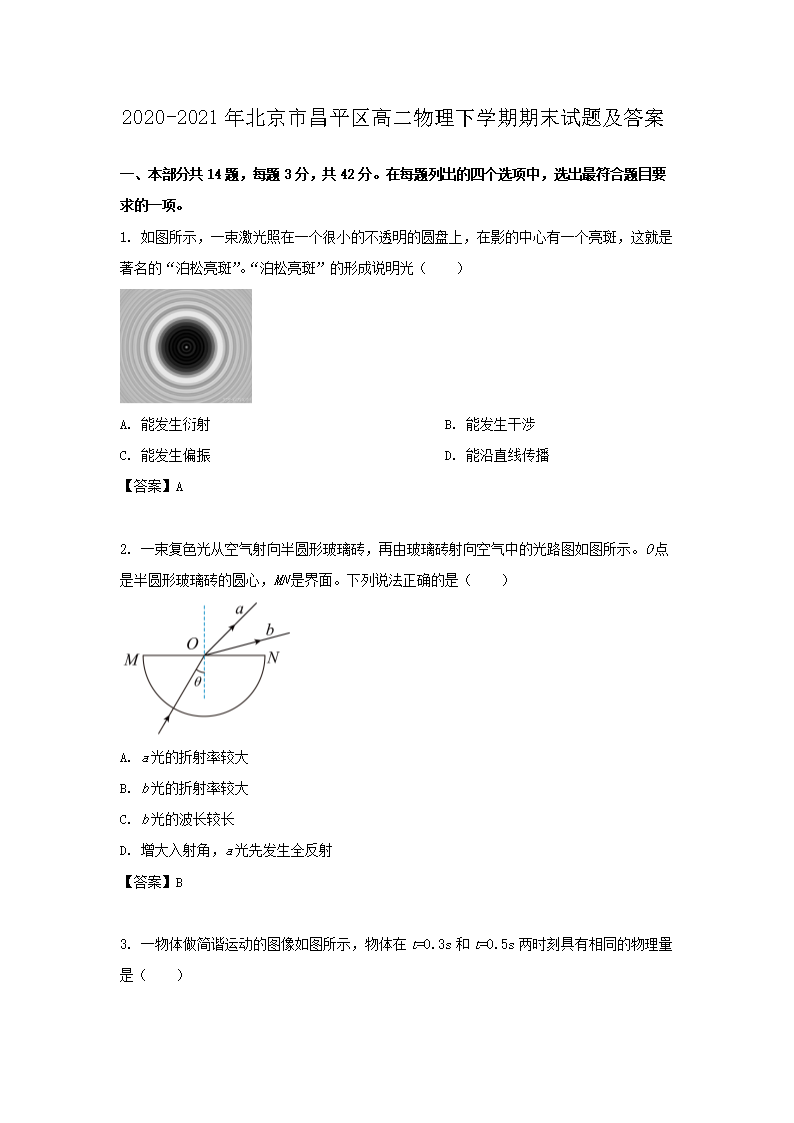 2020-2021年北京市昌平区高二物理下学期期末试题及答案(Word版)08-01