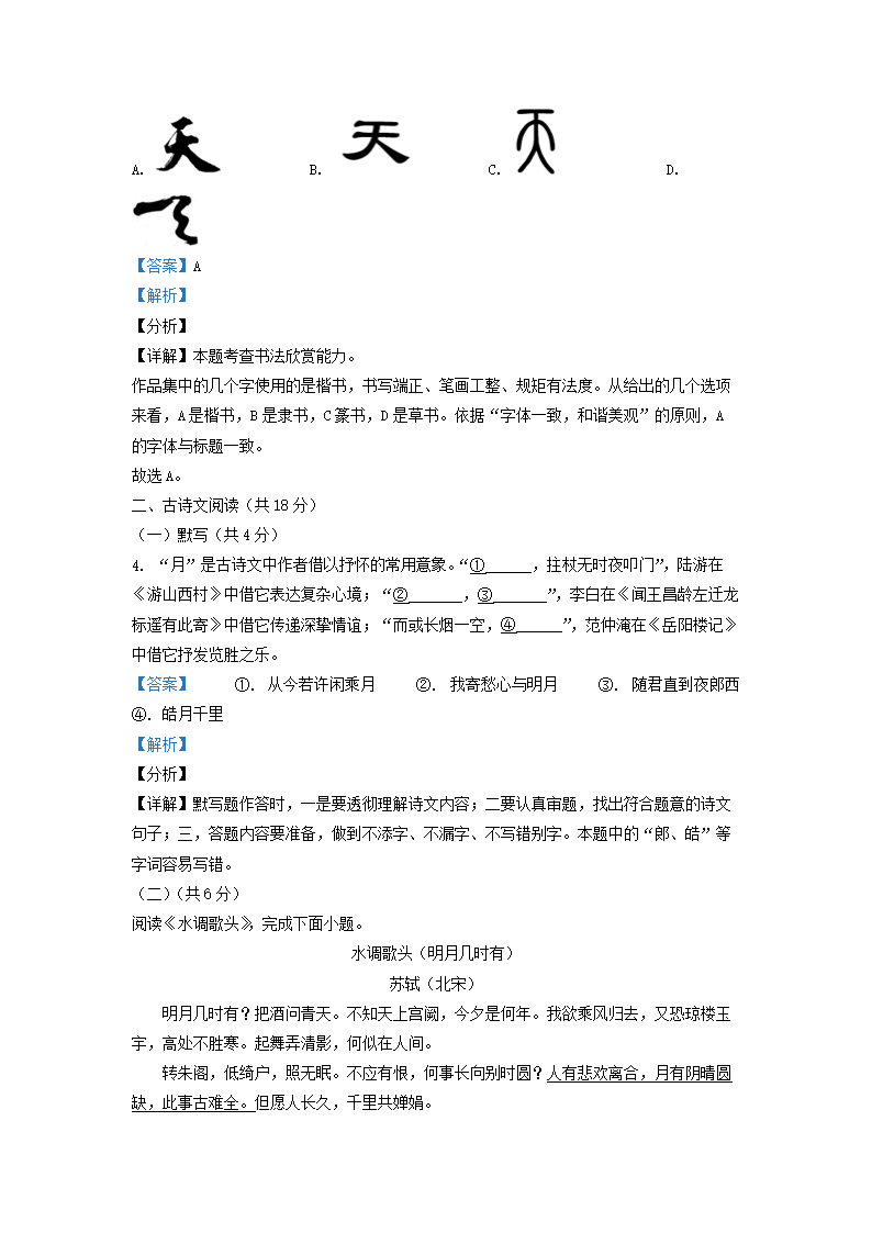 2021-2022学年北京大兴区初三第一学期语文期末试卷及答案(Word版)06-28