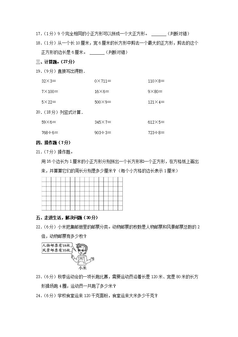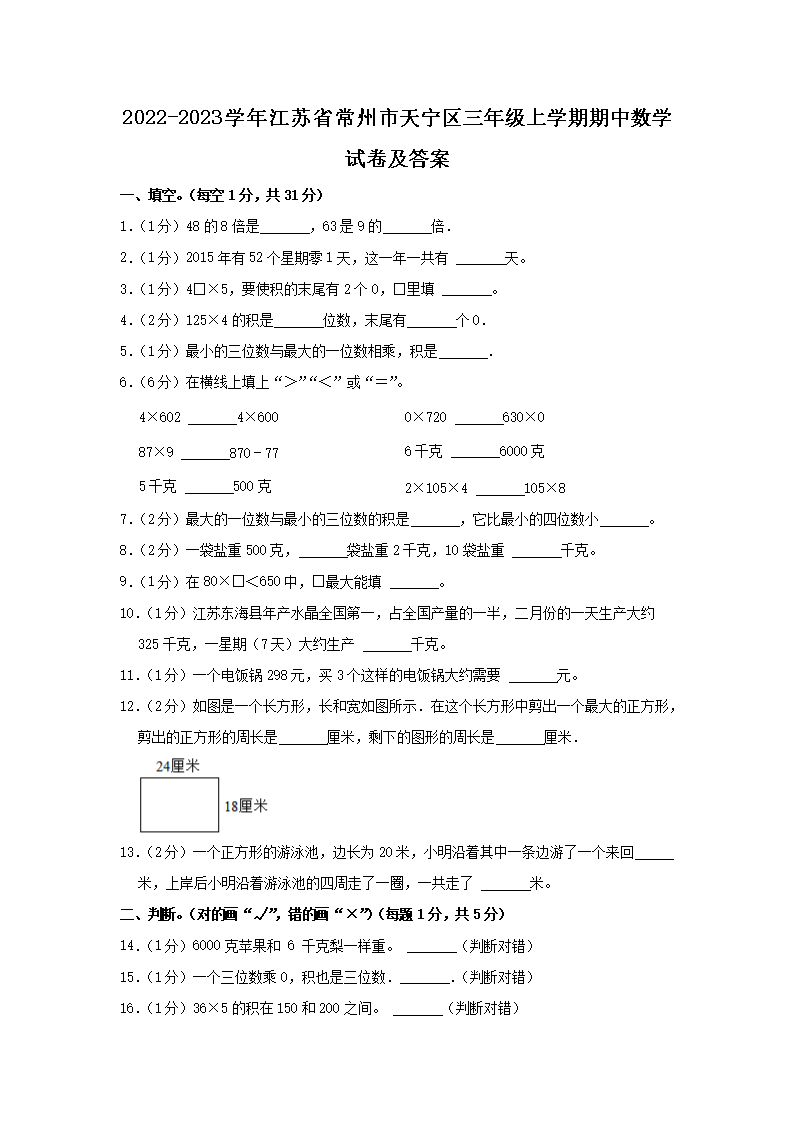 2022-2023学年江苏省常州市天宁区三年级上学期期中数学试卷及答案(Word版)07-07