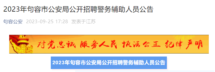 2023年江苏镇江句容市公安局招聘警务辅助人员公告(10名)09-27