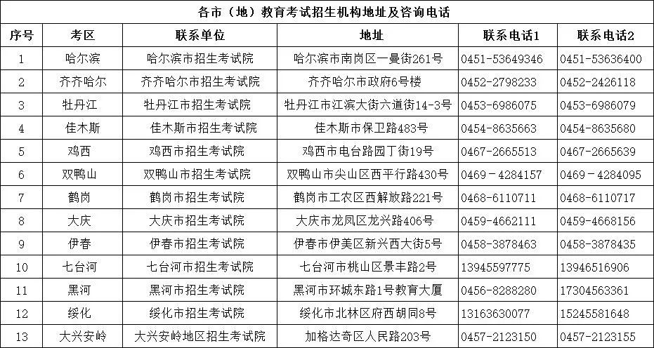附件:各市(地)教育考试招生机构地址及咨询电话