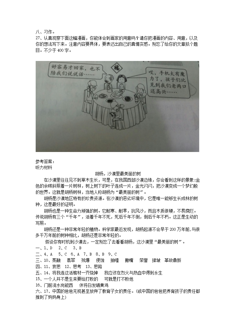 2021年北京市东城区小升初语文考试真题及答案(Word版)07-01