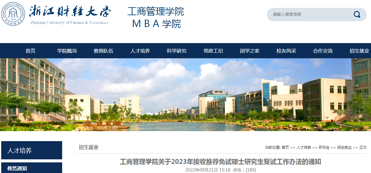 浙江财经大学工商管理学院关于2023年接收推荐免试硕士研究生复试工作办法的通知09-29