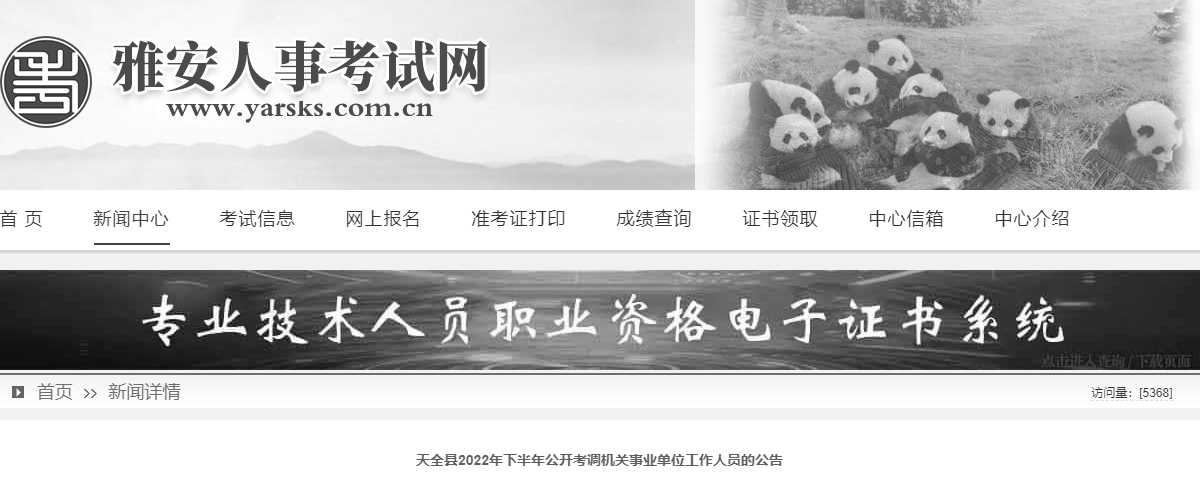 2022下半年四川雅安市天全县公开考调机关事业单位工作人员公告12-02