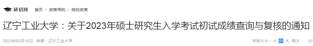 原文标题:辽宁工业大学:关于2023年硕士研究生入学考试初试成绩查询与复核的通知