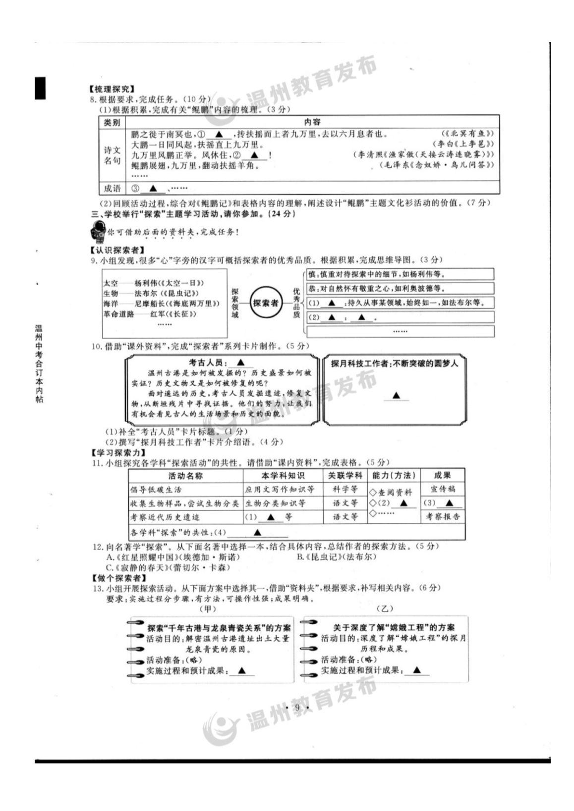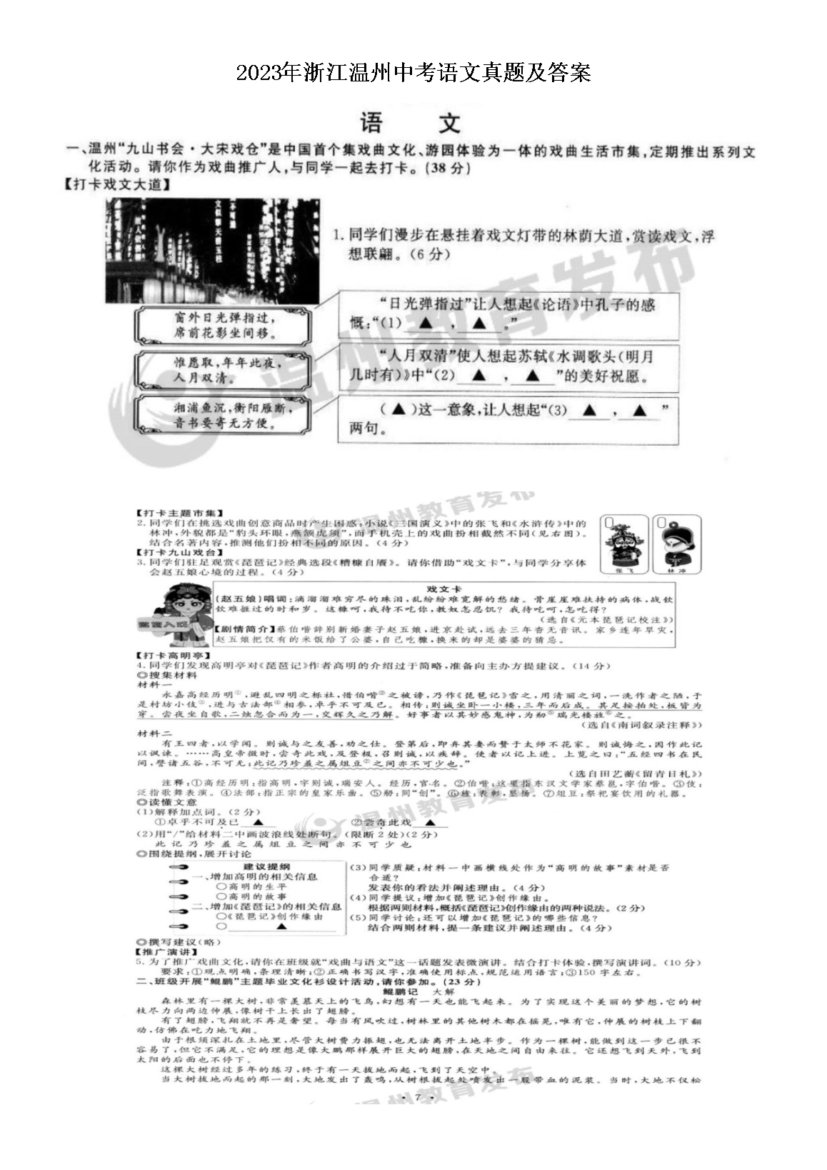 2023年浙江温州中考语文真题及答案(Word版)06-19