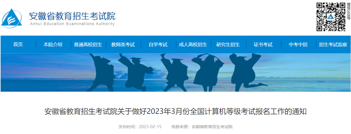 原文标题:安徽省教育招生考试院关于做好2023年3月份全国计算机等级考试报名工作的通知