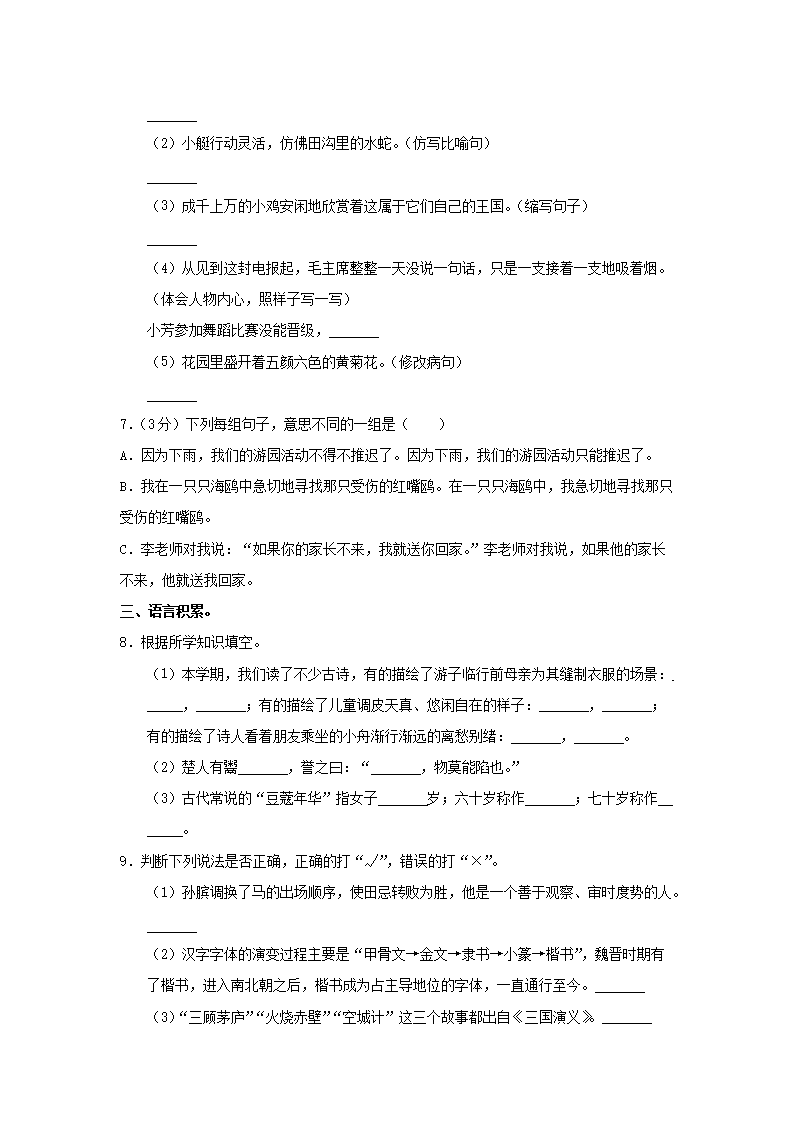 【文档预览】 文档大全网整理发布2020-2021学年云南昆明市五年级下册语文期末试卷及答案(Word版),前五页预览如下: