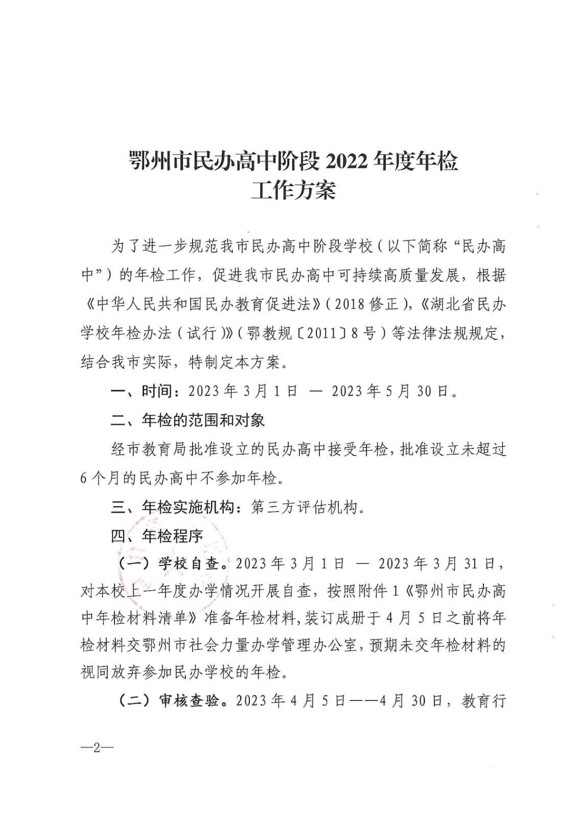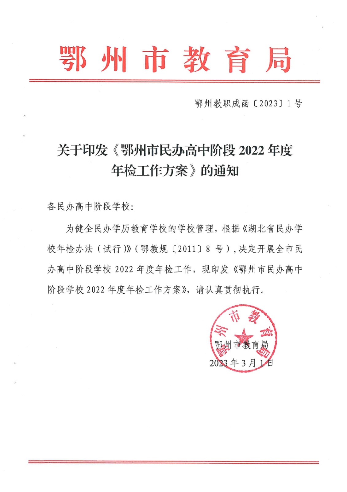 原文标题:关于印发《鄂州市民办高中阶段2022年度年检工作方案》的通知