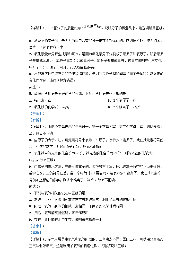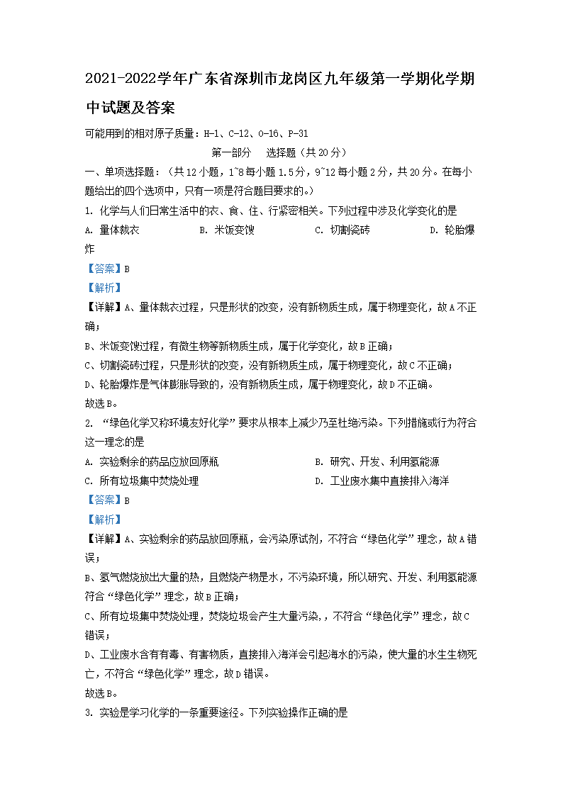 2021-2022学年广东省深圳市龙岗区九年级第一学期化学期中试题及答案(Word版)08-24