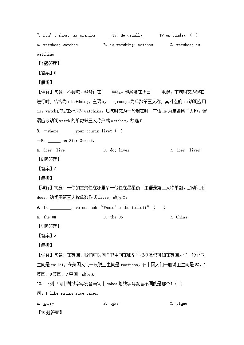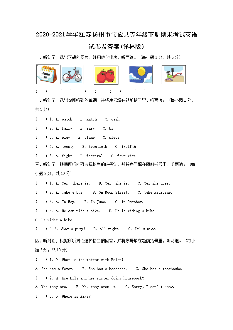 2020-2021学年江苏扬州市宝应县五年级下册期末考试英语试卷及答案(译林版)(Word版)09-22